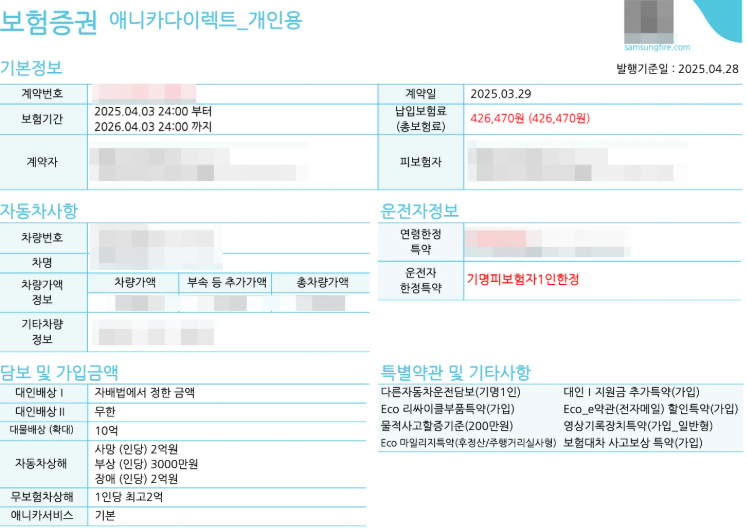 대부분 로그인 후 보험 계약 조회 메뉴에서 확인 가능합니다.