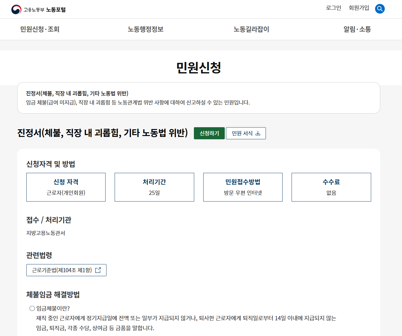 | 온라인 신고 | 고용노동부 홈페이지 |